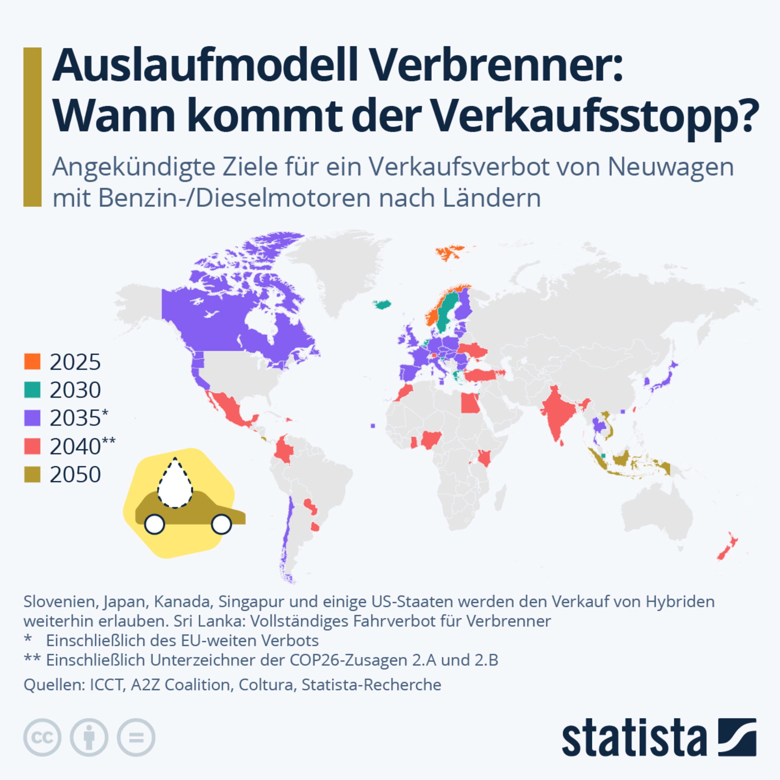 In vielen Ländern und US-Bundesstaaten gibt es bereits ein Datum für den Verkaufsstopp von Verbrennern. Die Schweiz hinkt dagegen hinterher.